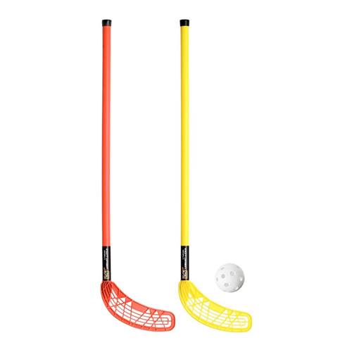 Florbola nūju komplekts Unihoc (80 cm) ir lieliska izvēle iesācējiem, skolas nodarbībām un aktīvai brīvā laika pavadīšanai. Komplekts ir īpaši piemērots bērniem, kuri tikai sāk iepazīt florbolu, nodrošinot vienkāršu un drošu spēles pieredzi. Komplektā ietilpst divas 80 cm garas florbola nūjas un viena bumbiņa, kas ļauj uzreiz sākt spēli bez papildu aprīkojuma iegādes. Nūjas ir vieglas un izturīgas, izgatavotas no kvalitatīva plastmasas materiāla, kas nodrošina ilgu kalpošanas laiku un izturību pret ikdienas lietošanu. Šim modelim nav lāpstiņas izliekuma (taisna lāpstiņa), kas padara to universāli piemērotu gan labročiem, gan kreiļiem. Tas ir īpaši ērti iesācējiem, kuri vēl tikai apgūst pareizu satvērienu un spēles tehniku. 80 cm garums (aptuveni 90–91 cm ar lāpstiņu) ir piemērots spēlētājiem ar augumu ap 140–150 cm, tāpēc komplekts ir ideāli piemērots skolām, sporta nodarbībām un rotaļām.